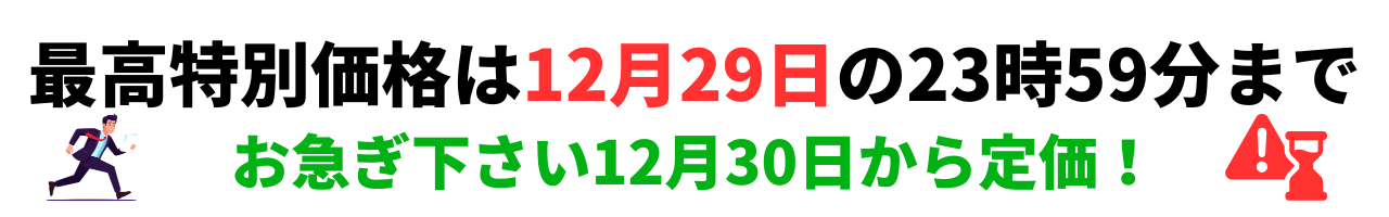 この最高特別価格の期間が最大のチャンスですので後悔なきよう今すぐお申し込み下さい